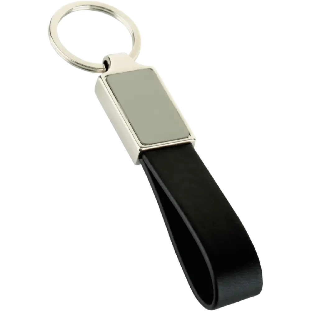 Metal Black Leather Keychain